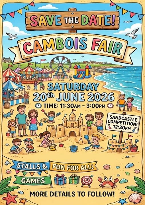 East Bedlington Parish Council Mark Your Calendars: Cambois Fair is Back! Get ready for some seaside fun! Cambois Fair is returning this summer. It’s time to dust off those buckets and spades for a day of sun, sand, and smiles. The Details: When: Saturday, 20th June 2026 Time: 11:30am – 3:00pm Where: Next to Charltons Bar, Cambois Sandcastle Competition: Starts at 12:30pm — who will be crowned the winner? Classic Stalls & Games Fun for all ages! Keep an eye on our page over the coming weeks as we reveal more about the event!
