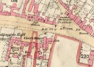 Cropped map to show workhouse. you can see it in the bottom left corner. Have included marketplace to prove its on front street. look for 'wilson's yard'. ![]()