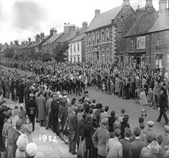 brass band marching through Bedlington Front Street. 1952.JPG
