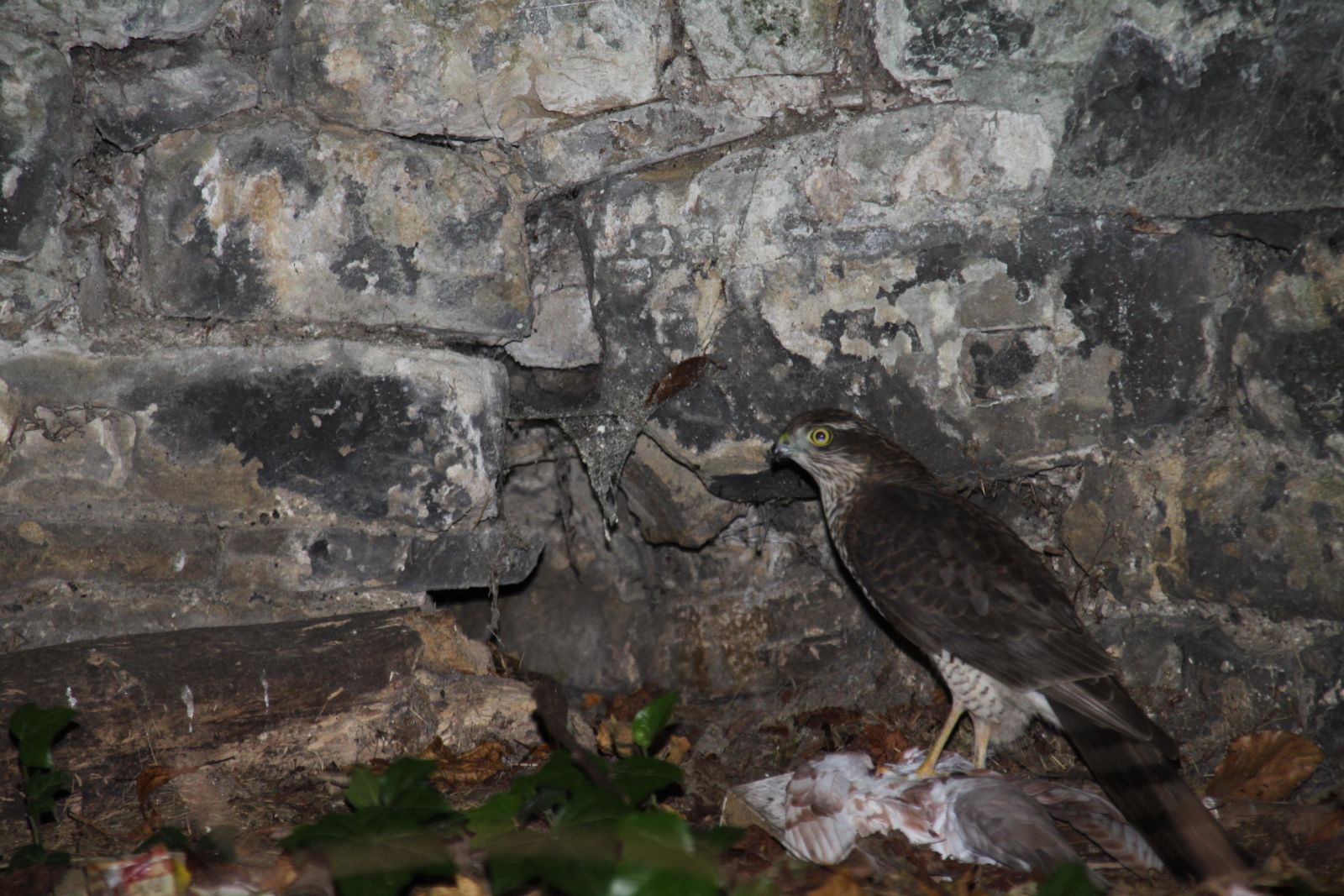 Not sure what kind of bird of prey this is but he was sure enjoying a pigeon from the front street. Possibly a Sparrowhawk?