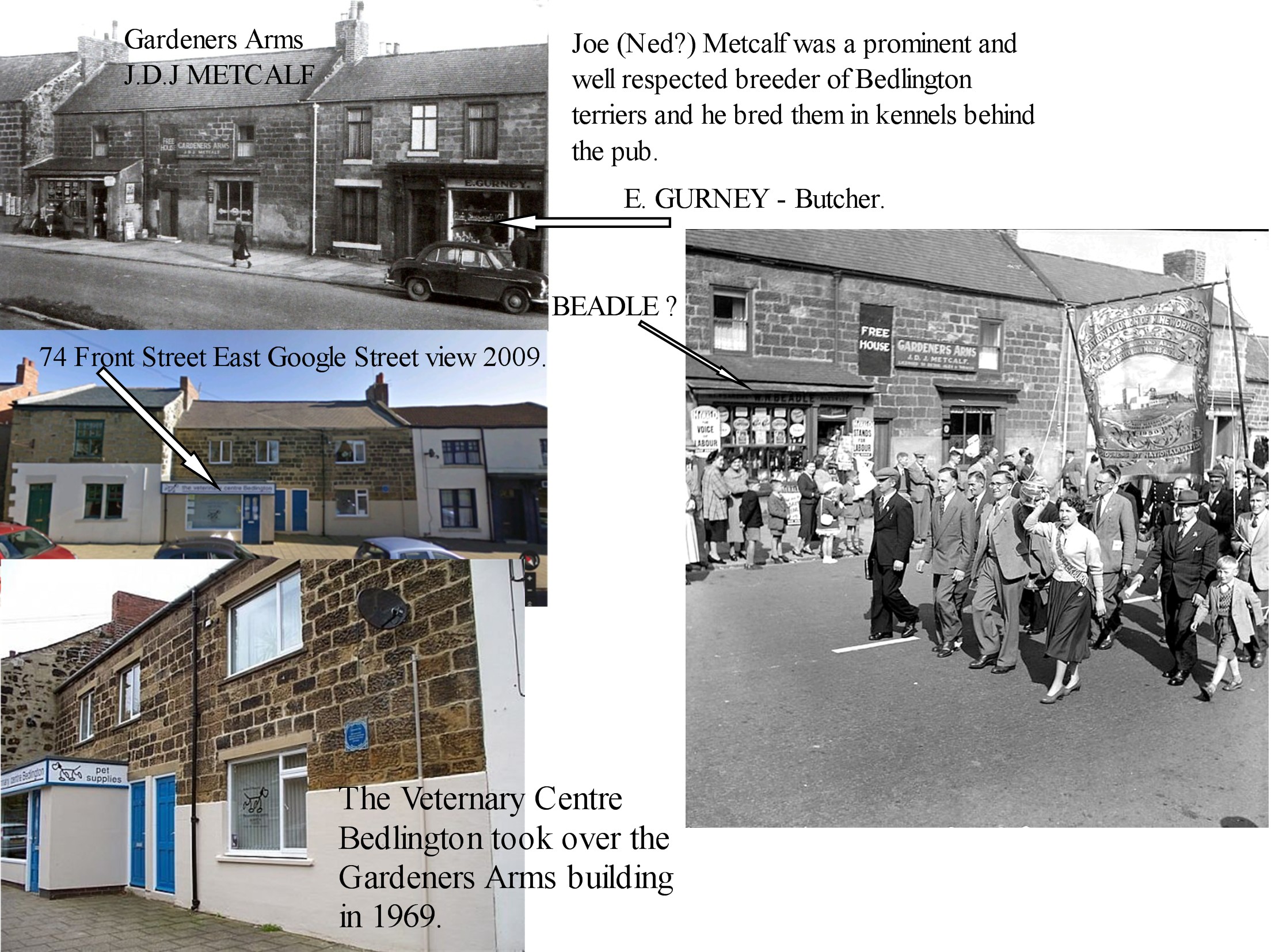 Gardeners Arms, Front Street East. The info with the photo  - The landlord was a character called J.D.J. Metcalfe. A prominent and well respected breeder of Bedlington terriers and he bred them in kennels behind the pub - was from 'Keith's' posting on this site.