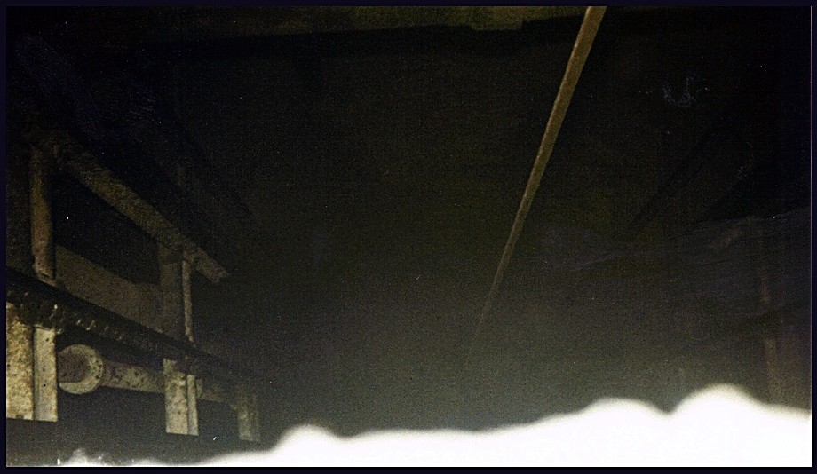 high pit wilma :- This was a very difficult shot to get,for obvious reasons! The flaring at the bottom ,was caused by the flashgun reflecting.Note the cage guides and water pipes at the left side.
