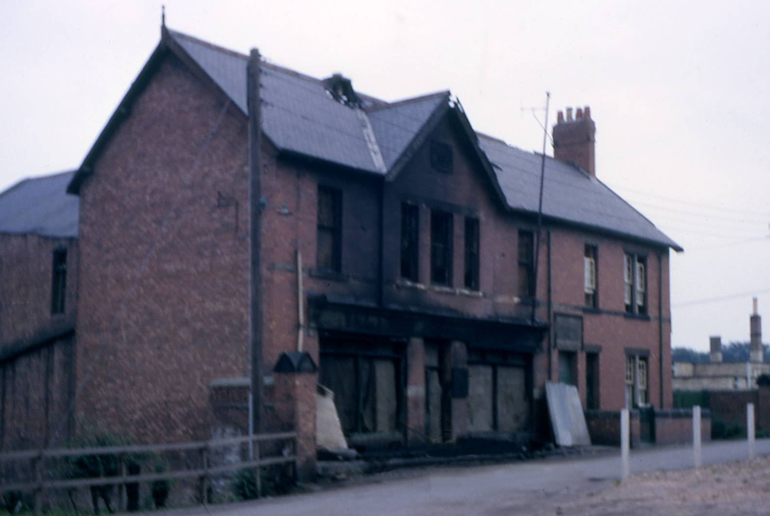 This photo was taken in 1963 shortly after the old Co-op building was damaged by a fire. The Co-op store had been closed for some time. The building was later demolished, but the old Co-op Manager's house to the right which was undamaged by the fire remains.