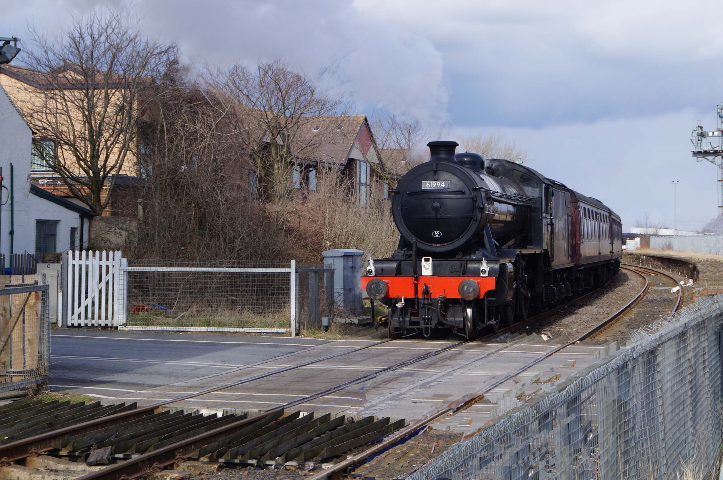 A steam Special, the Wansbeck, carries passengers past tthe remains of Bedlington Station in 2013.