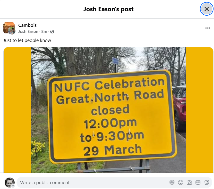 Alan Edgar (Eggy1948) 1,286 Posted March 23, 2025 So not just a parade through Newcastle on an open top bus it's a 9 1/2 hour road closure for celebrations on the Town Moor. Newcastle United official announcement – Details of special Town Moor Cup winners event 2 days ago 117 Comments Share Details of a special Carabao Cup winners event have been released by Newcastle United. The event will be held on The Town Moor on Saturday 29 March from 4pm to 8pm. The Newcastle United official announcement (see below) on Friday morning giving the full details. Newcastle United fans needing to register their interest if they want to attend. Newcastle United official announcement – 21 March 2025: Newcastle United will celebrate the club’s historic Carabao Cup final victory with a free open-air event on Saturday, 29th March. Supporters will get the chance to see Eddie Howe and the first team players with the cup for the first time since last Sunday’s famous win at Wembley. Newcastle United is working with its city partners to deliver a safe and enjoyable event. The club extends its thanks to the Freemen of Newcastle, Newcastle City Council, the North East Combined Authority, NE1, Nexus and the emergency services. TOWN MOOR EVENT Set around a large main stage on the Town Moor, adjacent to the Great North Road, the open-air event will be free to attend. Supporters are asked to register their interest to assist with planning (details below). News Newcastle United official announcement – Details of special Town Moor Cup winners event 2 days ago 117 Comments Share Details of a special Carabao Cup winners event have been released by Newcastle United. The event will be held on The Town Moor on Saturday 29 March from 4pm to 8pm. The Newcastle United official announcement (see below) on Friday morning giving the full details. Newcastle United fans needing to register their interest if they want to attend. Howe: We know what’s at stake and we’ve... 'I want Newcastle to win a trophy!' |... Merse: Biggest winners tonight are... Ref Watch: Would Newcastle win appeal... Celebration SCENES! New footage of... The agony and ecstasy of Newcastle fans... Slot: We know Newcastle will go all in... 'Newcastle will always be in our... 'Isak vs Van Dijk will be key' |... 'We feel better prepared this time' |... 'The Tuesday factor!' | Merse worried... Howe calls on fan support to 'push... < > Newcastle United official announcement – 21 March 2025: Newcastle United will celebrate the club’s historic Carabao Cup final victory with a free open-air event on Saturday, 29th March. Supporters will get the chance to see Eddie Howe and the first team players with the cup for the first time since last Sunday’s famous win at Wembley. Newcastle United is working with its city partners to deliver a safe and enjoyable event. The club extends its thanks to the Freemen of Newcastle, Newcastle City Council, the North East Combined Authority, NE1, Nexus and the emergency services. TOWN MOOR EVENT Set around a large main stage on the Town Moor, adjacent to the Great North Road, the open-air event will be free to attend. Supporters are asked to register their interest to assist with planning (details below). It will feature a DJ, live band, ‘Road to Wembley’ highlights, a screening of the full cup final and special guests. The team will then proudly lift the Carabao Cup on stage – presenting the club’s first domestic trophy for 70 years to the city. The celebrations will close with a spectacular show from club partner Sela and further event details will be published ahead of the show. REGISTER YOUR INTEREST Supporters must register their interest to attend at book.newcastleunited.com. Phased priority period for fans to register interest: Friday, 21st March, from 1pm – season ticket holders Friday, 21st March, from 3pm – Mags/Mags + Members Saturday, 22nd March, from 10am – all other supporters Once your priority period opens you will have the opportunity to register your interest until midnight on Sunday, 23rd March Registration is one per supporter number. Adults will be able to add one junior ticket to their registration with the adult supporter number. Registrations must be submitted via book.newcastleunited.com. No email/telephone/in-person registrations can be accepted. Registering your interest does not guarantee you access to the event. Further details will follow to those that register their interest with the club. We do expect traffic to the website to be high and thank our supporters in advance for their patience. ROAD CLOSURES A list of road closures can be found here. TRAVEL AND TRANSPORT Supporters are encouraged to plan their journeys in advance and are advised to use public transport where possible. A live route planner can be found here. FAQs A list of FAQs can be found here and supporters are encouraged to check the club’s social media accounts and website for any further updates. Link the The Mag :- https://www.themag.co.uk/2025/03/newcastle-united-official-announcement-details-of-special-town-moor-cup-winners-event/