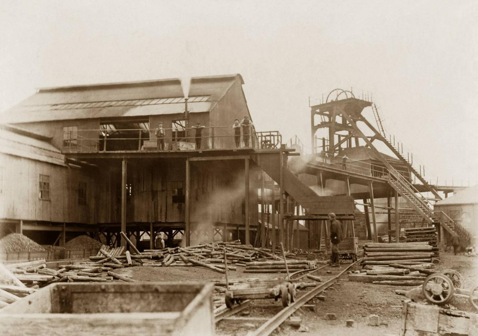 This photo shows a delivery of pit props in the pit yard. The length of the props presumably indicates the height of the seam. Photographs at Woodhorn Museum show that many miners in the area worked in seams much lower than this, and at the end of Netherton Colliery's working life men were crawling through tunnels no more than 2 feet high to get out the last accessible coal.