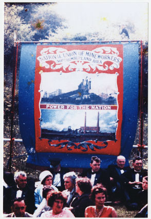Miners' Picnic at Bedlington, Northumberland. The photo shows Backworth Colliery banner. 1961