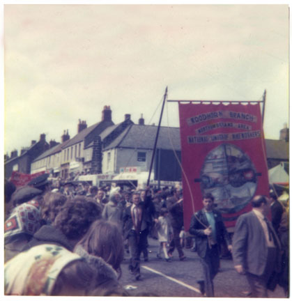 Miners' Picnic, Bedlington, showing the Woodhorn Colliery Branch Banner paraded down Front Street. 1970