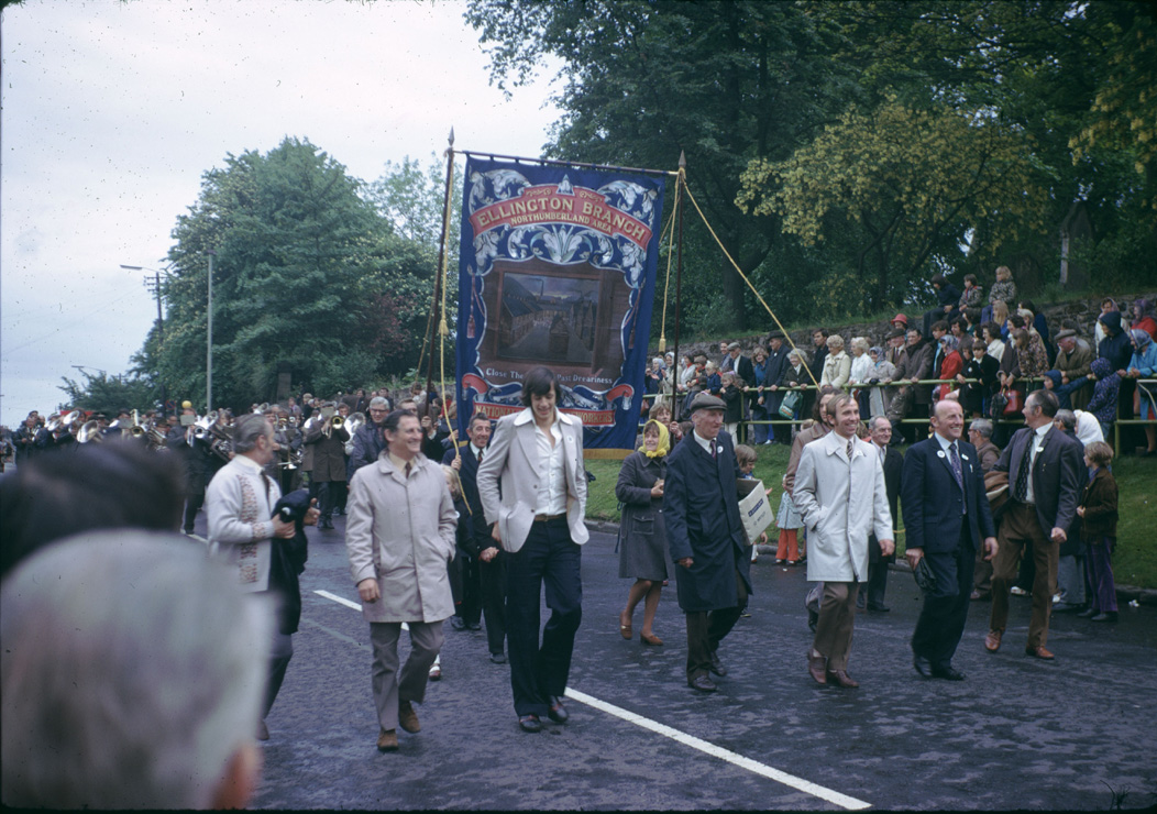 Miners' Picnic, Bedlington, 1974.The parade shows the Ellington Miners' Banner